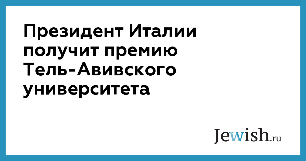 Президент Италии получит премию Тель-Авивского университета
