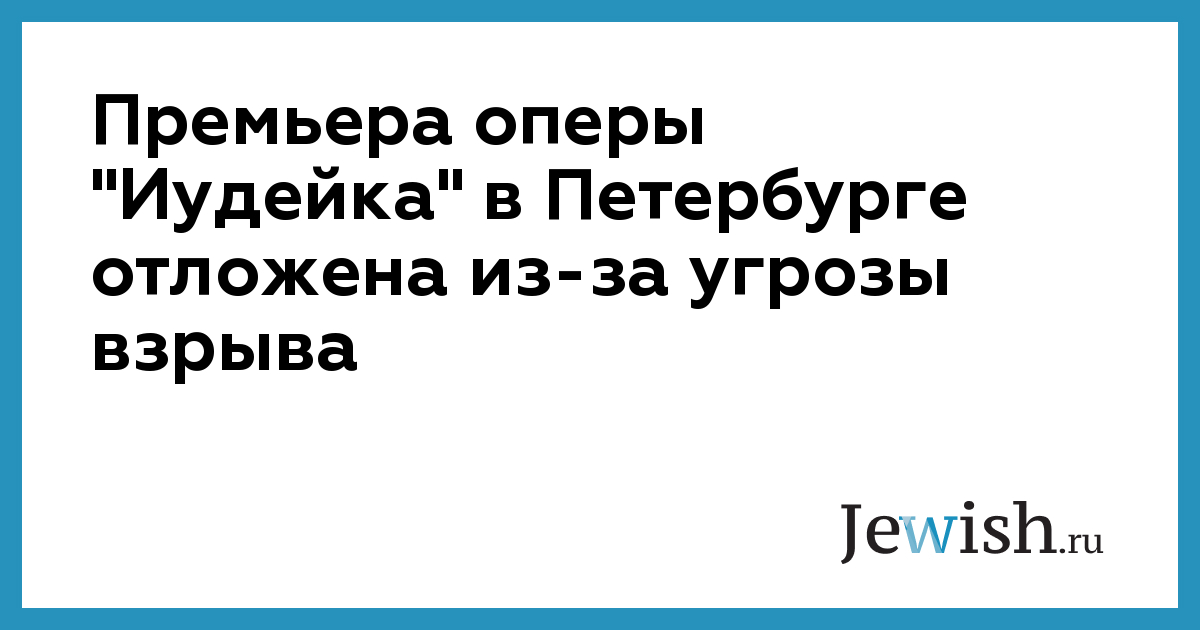 Премьера оперы "Иудейка" в Петербурге отложена из-за угрозы взрыва