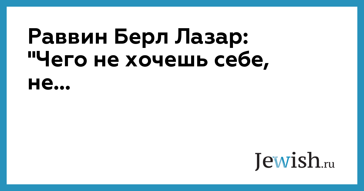 Раввин Берл Лазар: "Чего не хочешь себе, не...