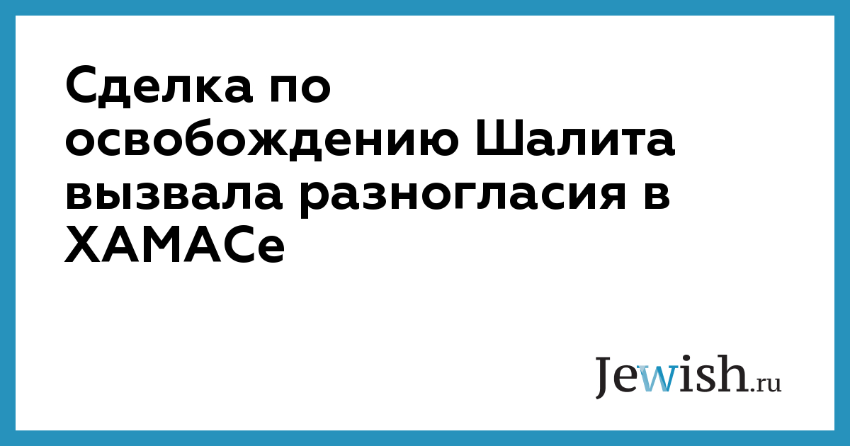 Сделка по освобождению Шалита вызвала разногласия в ХАМАСе