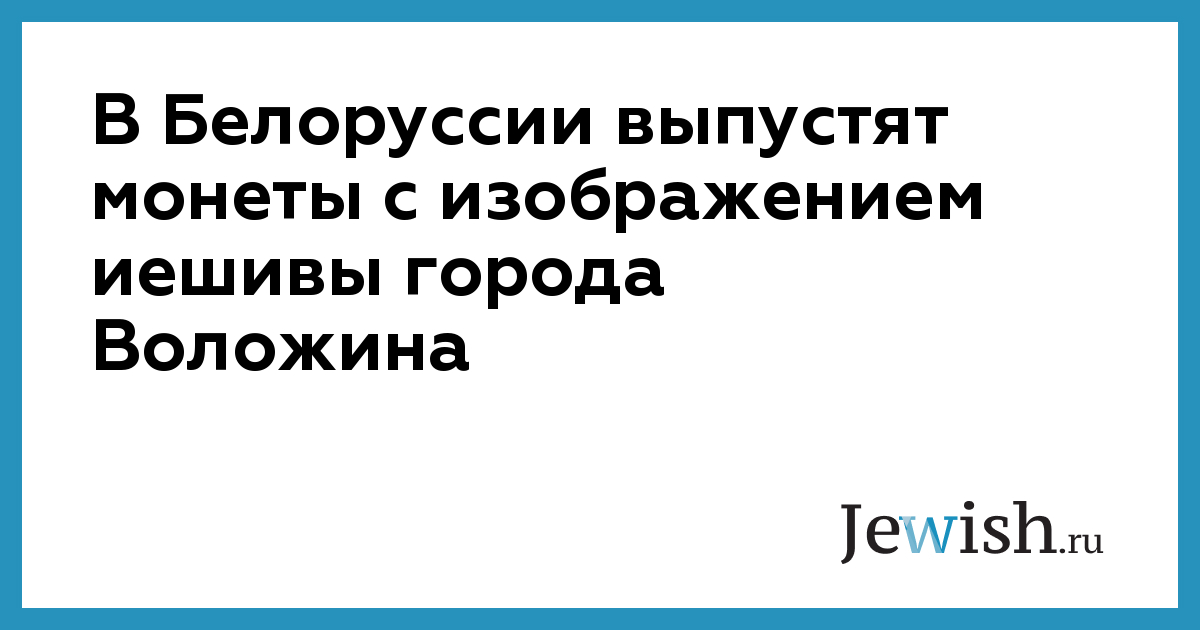 В Белоруссии будет выпущена памятная монета, посвященная иешиве города Воложина. Выпуск состоится в ходе реализации Национальным банком Республики Беларусь проекта, посвященного религиозным конфессиям, представленным на территории республики, сообщает еврейская газета "Берега".