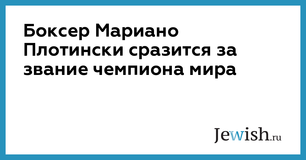 Мариано Плотински, аргентинский полутяжеловес еврейского происхождения, проведет в Гамбурге бой за звание чемпиона мира по версии WBO. Его соперником будет немец Юрген Бремер.