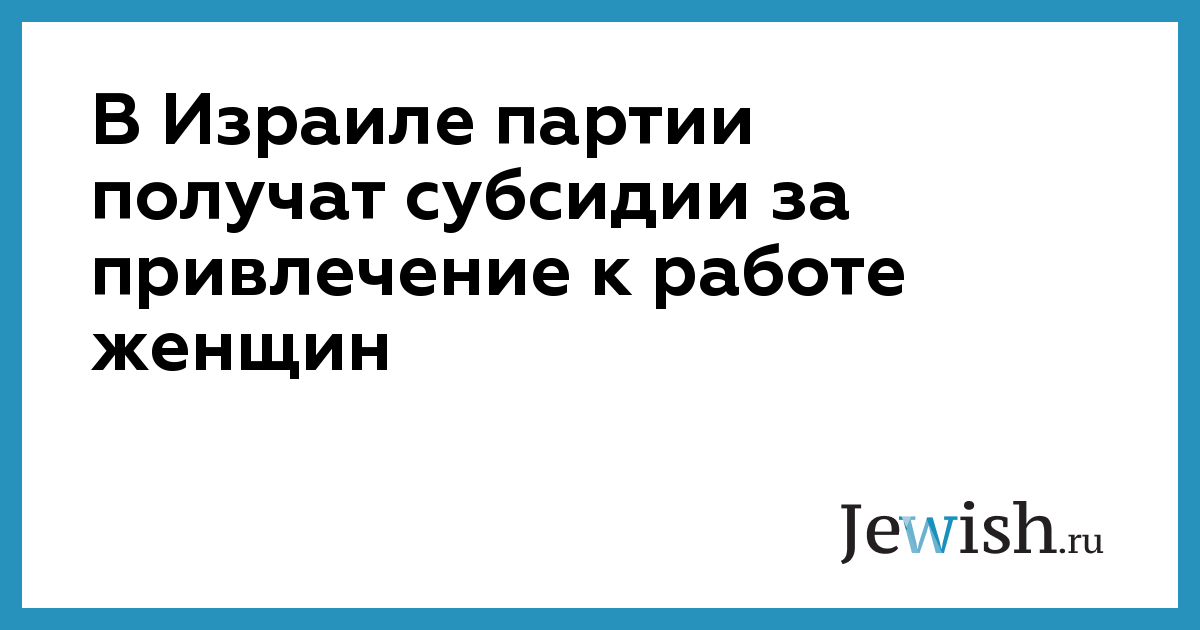 В Израиле партии получат субсидии за привлечение к работе женщин