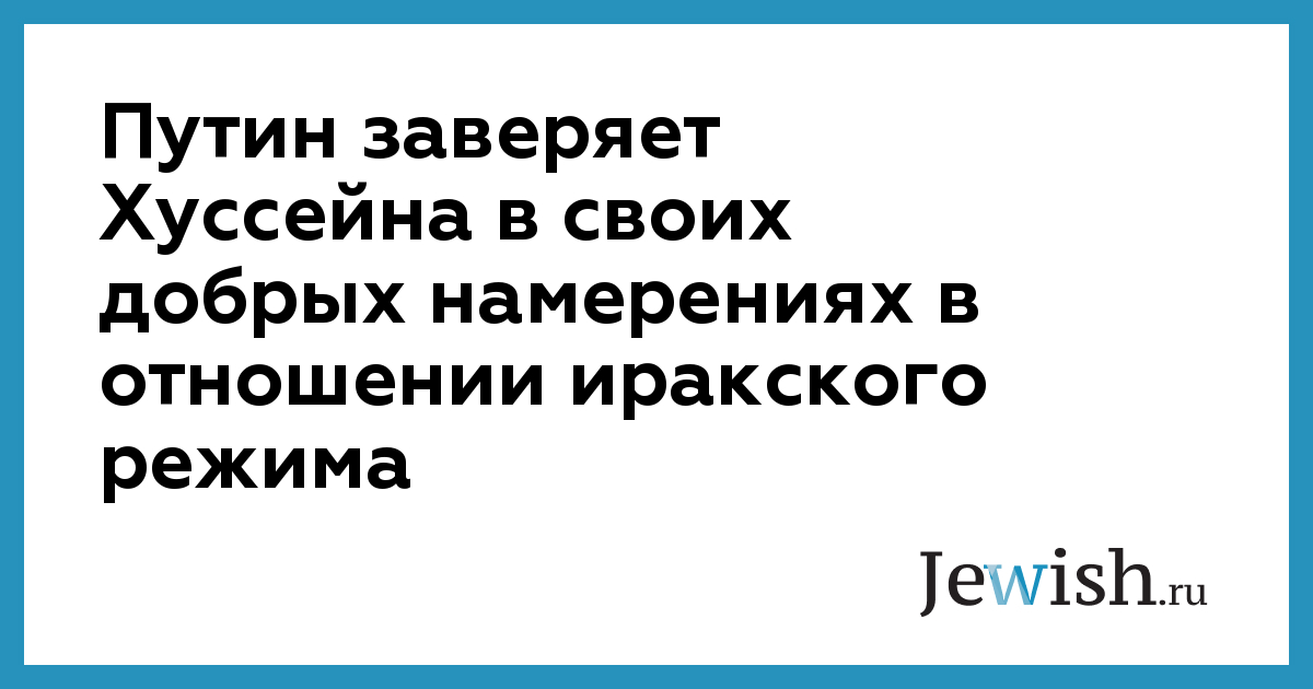 Владимир Путин направил президенту Ирака Саддаму Хуссейну послание, в котором подтвердил "твердый настрой российского руководства добиваться скорейшего политического урегулирования иракской проблемы, включая снятие установленных в отношении Ирака санкций, что позволило бы вернуть иракский народ к нормальной жизни". Послание было передано Саддаму Хусейну министром иностранных дел России Игорем Ивановым. Напомним, что последним крупным достижением Ирака на пути к "нормальной (для него) жизни" стало объявление, прозвучавшее из уст Саддама Хуссейна в пятницу. Как заявил диктатор, около 6 миллионов его сограждан буквально рвутся в бой, чтобы уничтожить Израиль в "справедливой священной войне", более того — для них уже открыты лагеря подготовки, идет запись добровольцев и численность желающих повоевать указана была с точностью до одного (1) человека: не менее 2 миллионов женщин и чуть более 4 миллионов мужчин. Так что стране, безусловно, нужны силы, средства и поддержка мирового сообщества, а особенно таких давних и надежных друзей, как Россия, чтобы довести до конца начатое дело. Против будут только цивилизованные демократические страны, но ведь они составляют меньшинство на карте мира... Против будут и евреи, но Путин их мнением не интересуется, наоборот, делает немало как раз для того, чтобы они не могли его публично высказывать — по крайней мере, в его стране и в его правление. Об этом тоже много новостей сегодня. Как — впрочем — и всегда.