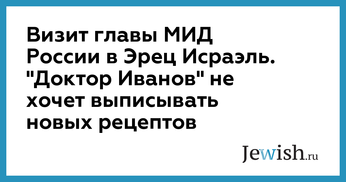 Визит главы МИД России в Эрец Исраэль. "Доктор Иванов" не хочет выписывать новых рецептов