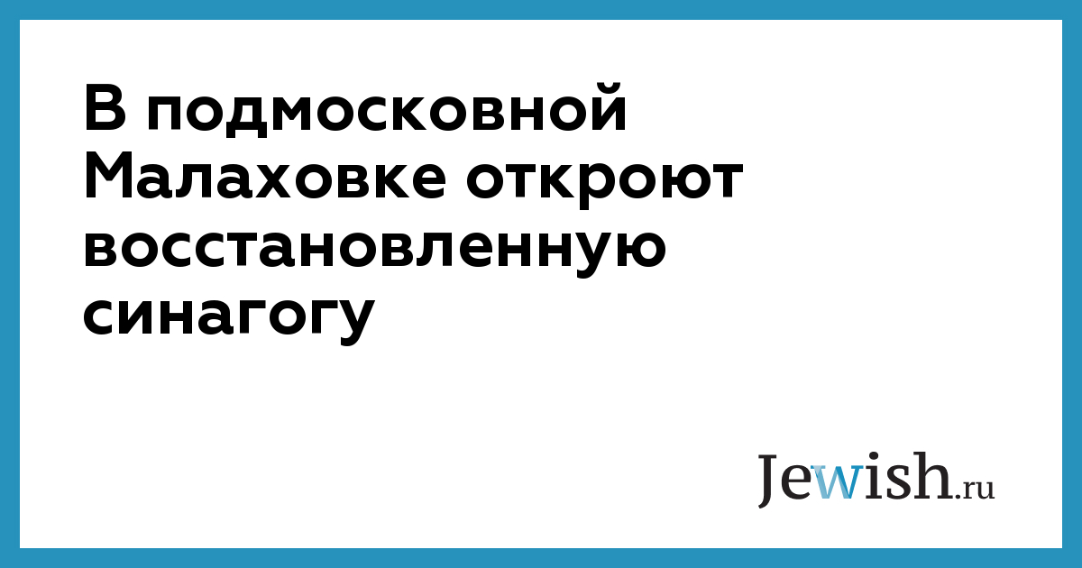 В подмосковной Малаховке откроют восстановленную синагогу