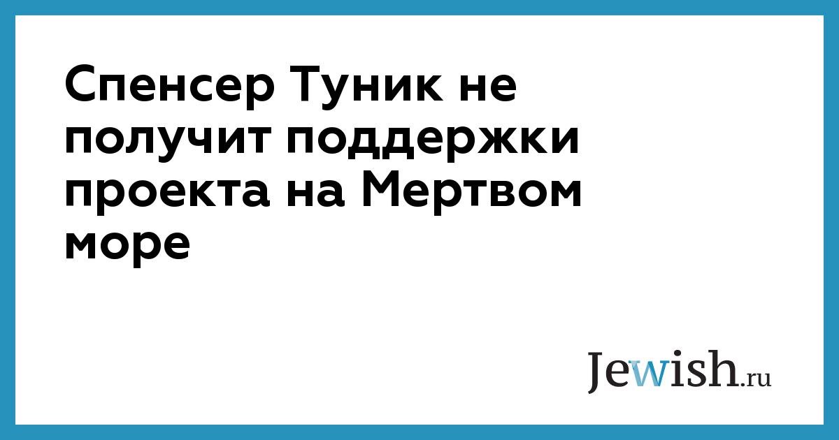 Спенсер Туник не получит поддержки проекта на Мертвом море