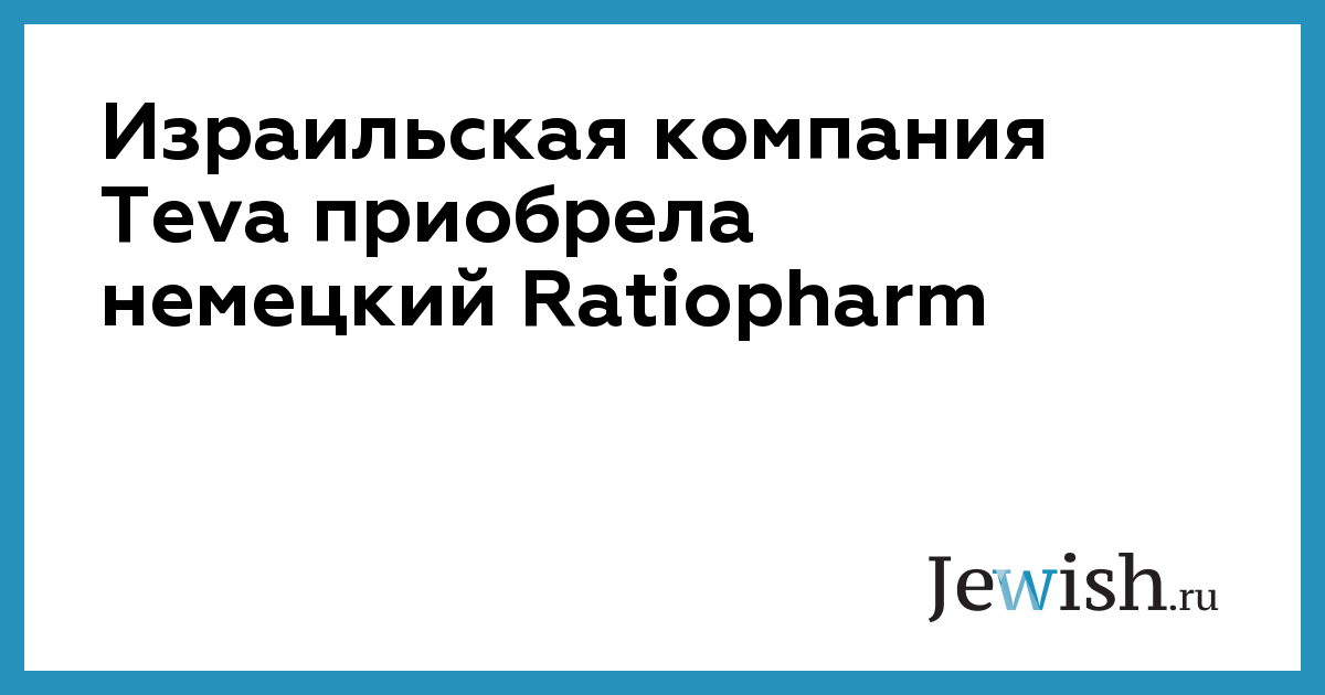 Израильская компания Teva приобрела немецкий Ratiopharm