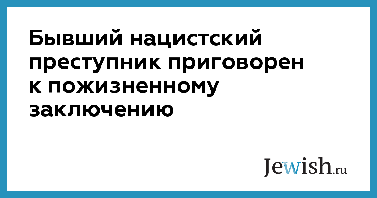 Бывший нацистский преступник приговорен к пожизненному заключению