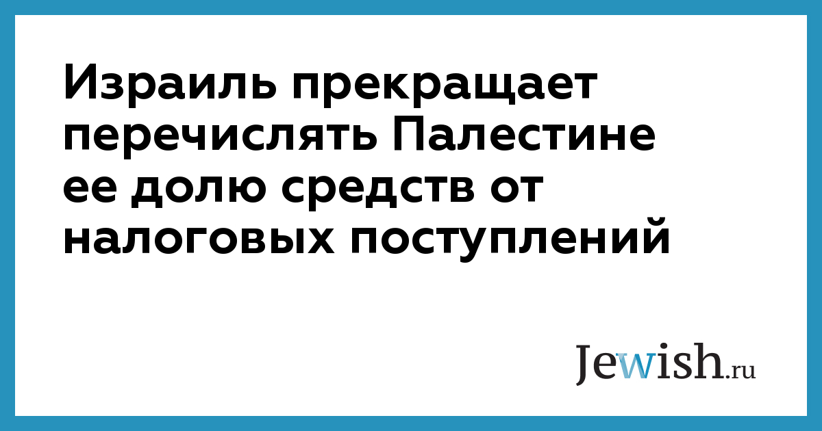 Израиль прекращает перечислять Палестине ее долю средств от налоговых поступлений