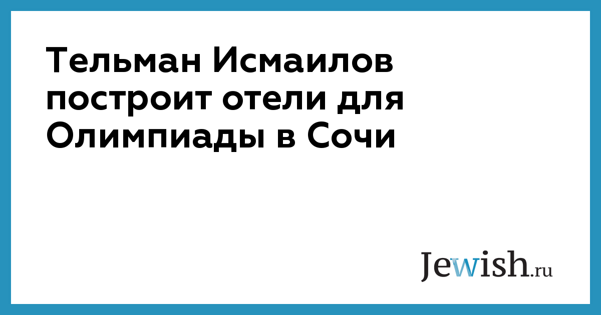 Тельман Исмаилов построит отели для Олимпиады в Сочи