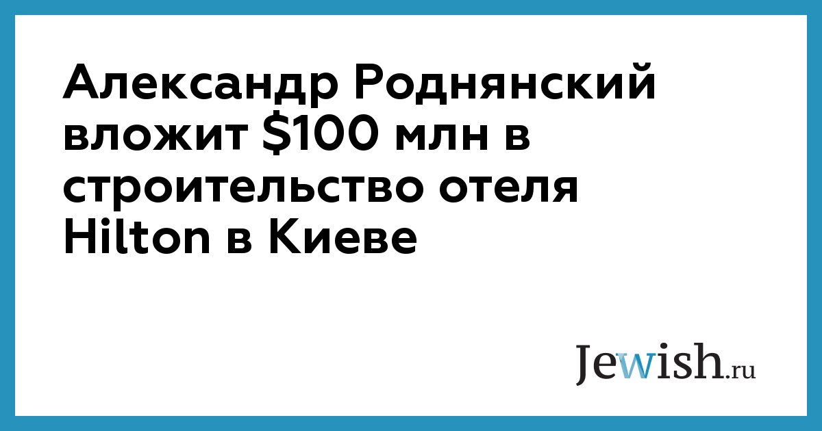 Экс-президент "СТС Медиа" Александр Роднянский и его двоюродный брат Борис Фуксман вложат до 100 млн долларов в достройку в центре Киева пятизвездочного отеля Hilton, который должен принять гостей чемпионата Европы по футболу 2012 года.
