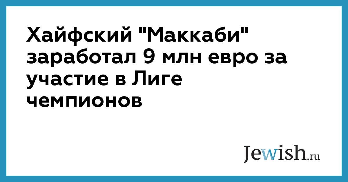 Хайфский "Маккаби", неудачно выступивший в нынешнем розыгрыше Лиги чемпионов, заработал за участие в турнире более 9 млн евро.