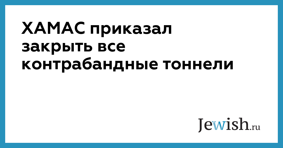 Палестинская террористическая организация ХАМАС приказала немедленно закрыть все туннели, по которым в сектор Газы поставляется контрабанда. Приказ был оглашен вчера вечером. Боевики ХАМАС появились у границы сектора Газы и велели контрабандистам бросить туннели.