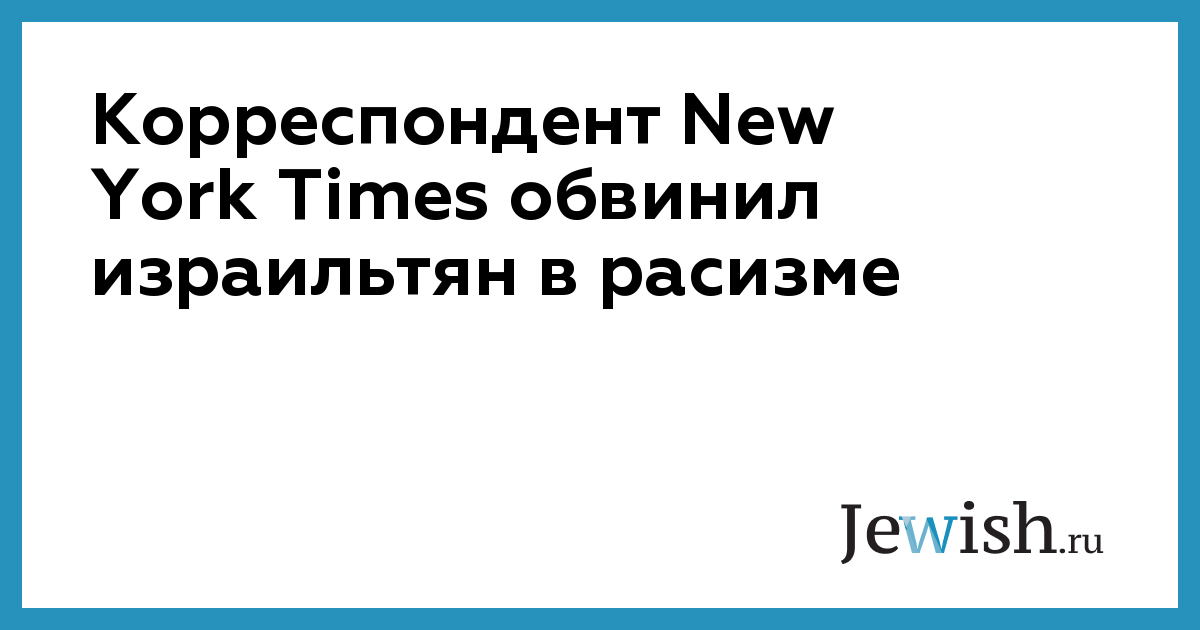 Корреспондент New York Times обвинил израильтян в расизме