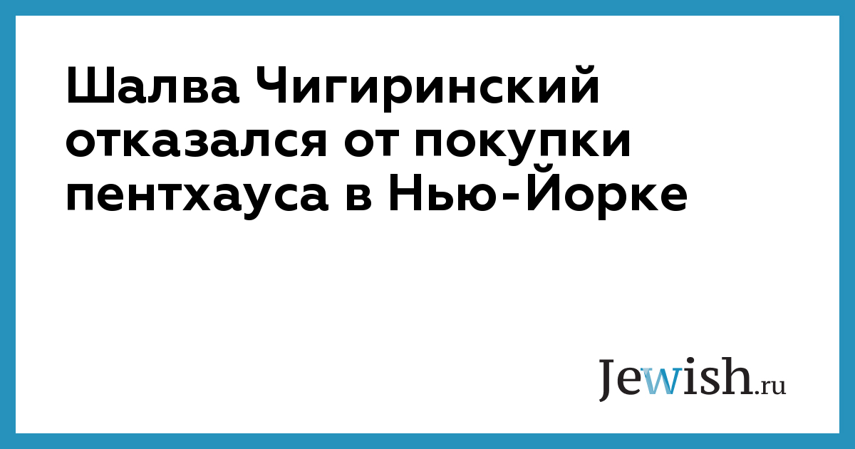 Шалва Чигиринский отказался от покупки пентхауса в Нью-Йорке