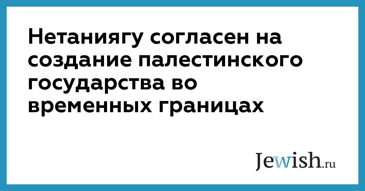 Премьер-министр Израиля Биньямин Нетаниягу потенциально принимает соглашение, в рамках которого будет создано независимое палестинское государство во временных границах.