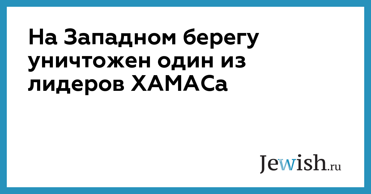 На Западном берегу уничтожен один из лидеров ХАМАСа