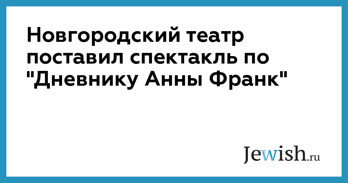 Новгородский театр создал спектакль в сотрудничестве с Фондом Анны Франк и Новгородским обществом еврейской культуры. Артисты изучали документы времен войны, еврейские традиции и музыку.