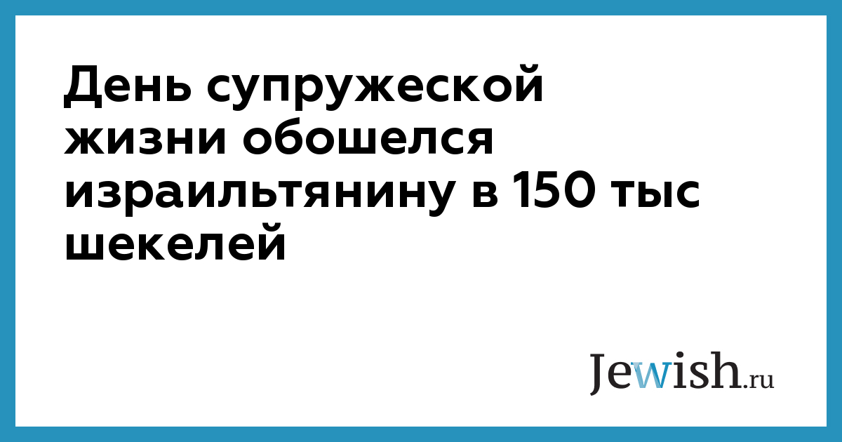 День супружеской жизни обошелся израильтянину в 150 тыс шекелей