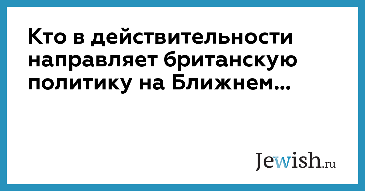 Кто в действительности направляет британскую политику на Ближнем...