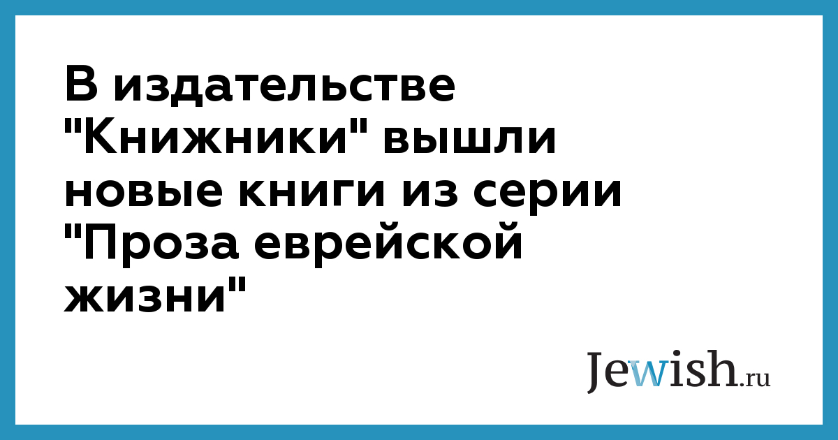 В издательстве "Книжники" вышли новые книги из серии "Проза еврейской жизни"