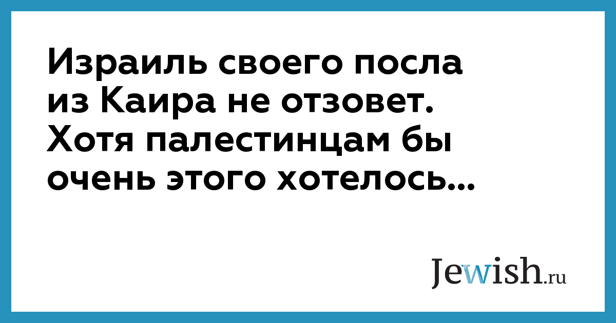 Израиль своего посла из Каира не отзовет. Хотя палестинцам бы очень этого хотелось...
