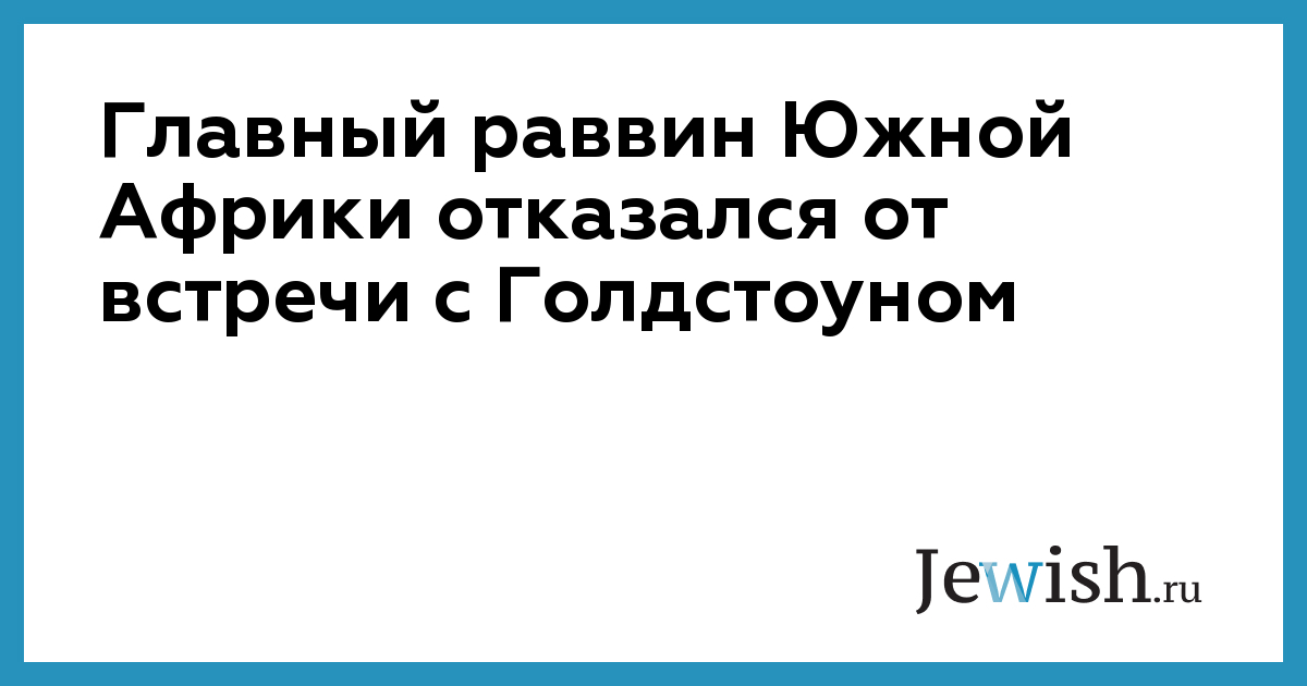 Главный раввин Южной Африки Уоррен Гольдштейн отказался на этой неделе встретиться с судьей Ричардом Голдстоуном и представителями Южно-Африканской сионистской федерации (SAZF), чтобы обсудить спорный доклад, представленный комиссией во главе с Голдстоуном в Совет по правам человека ООН.