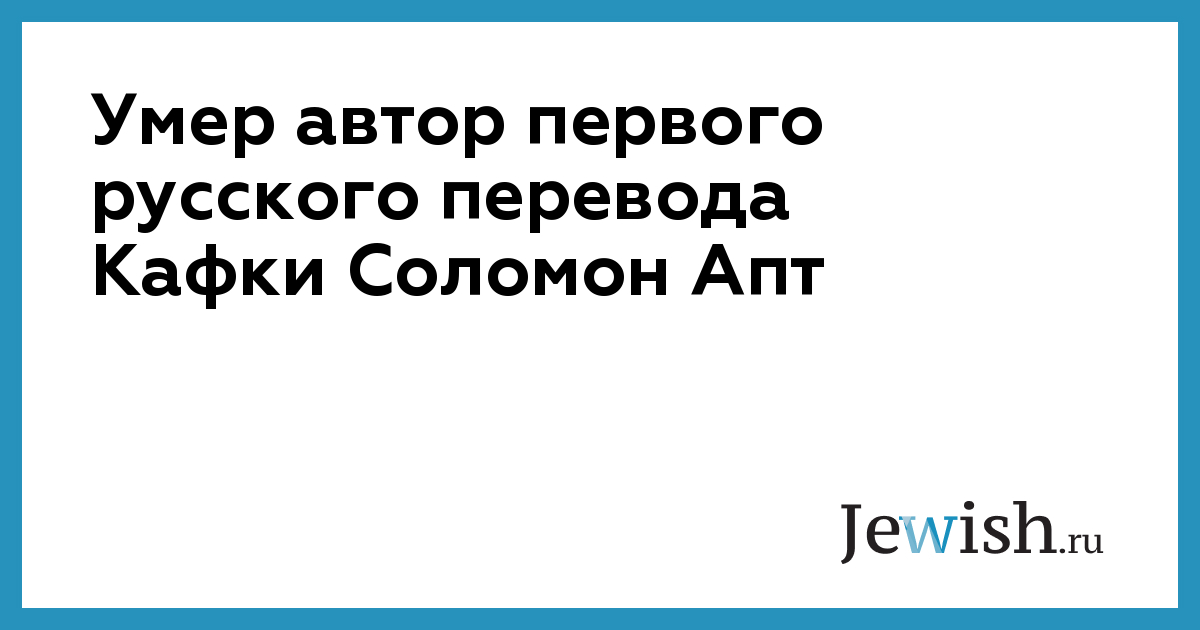 Умер автор первого русского перевода Кафки Соломон Апт
