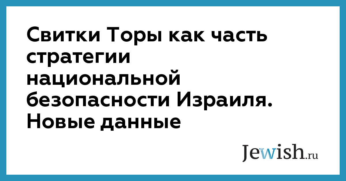 Свитки Торы как часть стратегии национальной безопасности Израиля. Новые данные