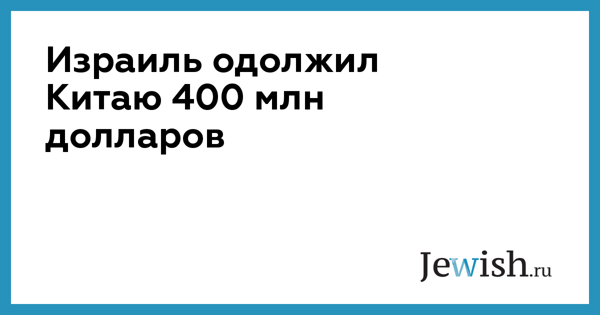 Израиль одолжил Китаю 400 млн долларов