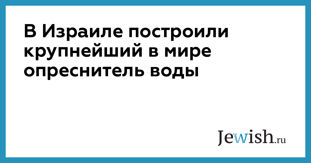 В Израиле построили крупнейший в мире опреснитель воды