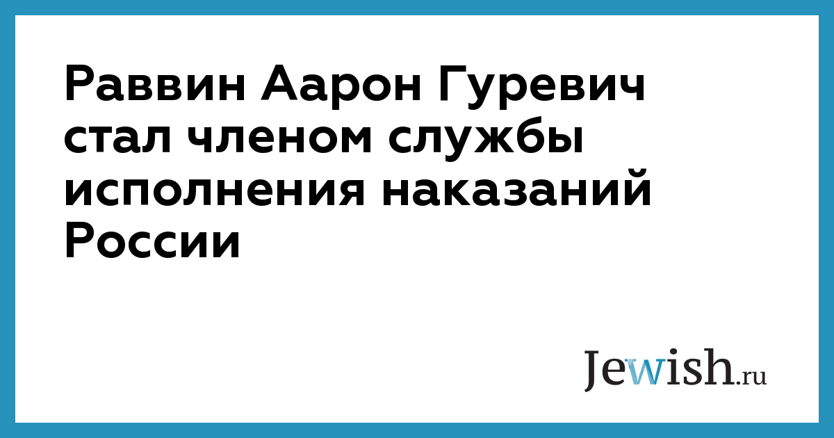 Раввин Аарон Гуревич стал членом службы исполнения наказаний России