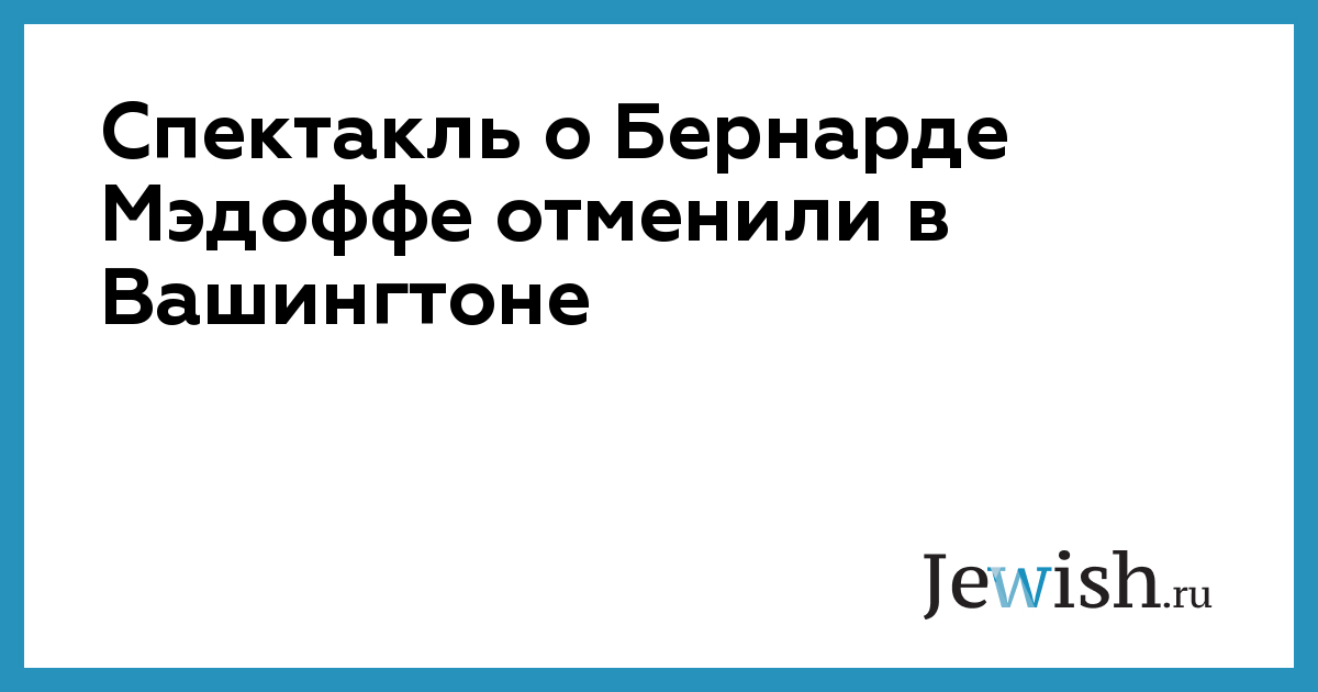 Спектакль о Бернарде Мэдоффе отменили в Вашингтоне
