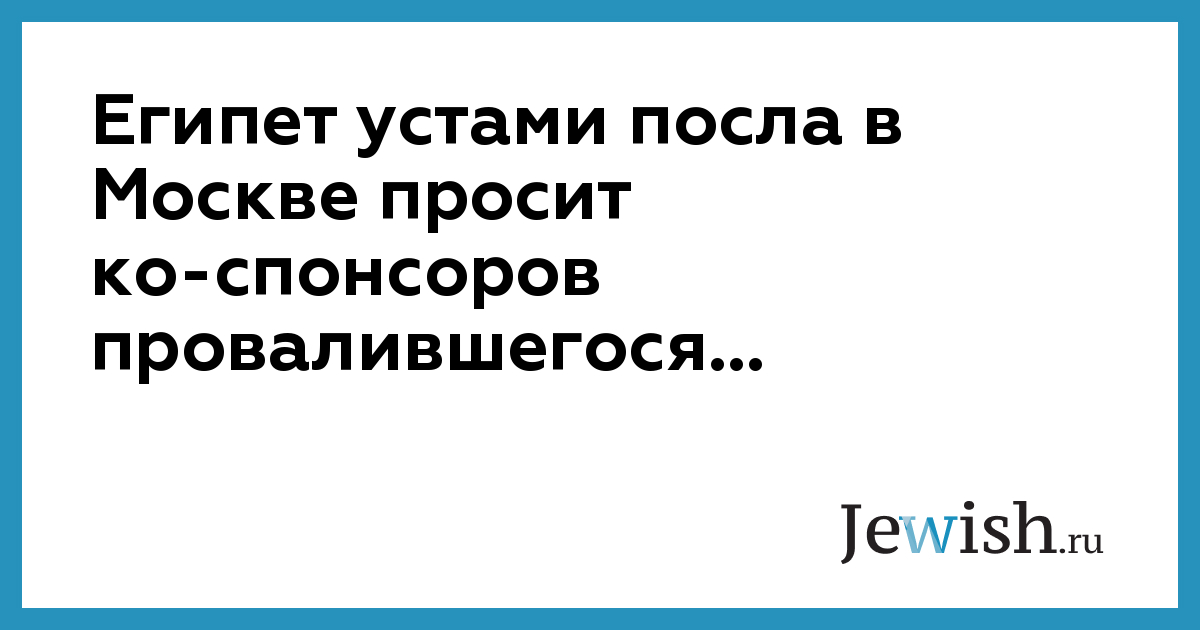 Египет устами посла в Москве просит ко-спонсоров провалившегося...