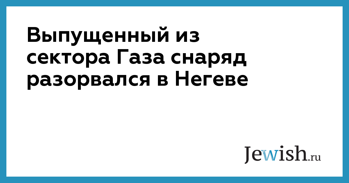 Выпущенный из сектора Газа снаряд разорвался в Негеве