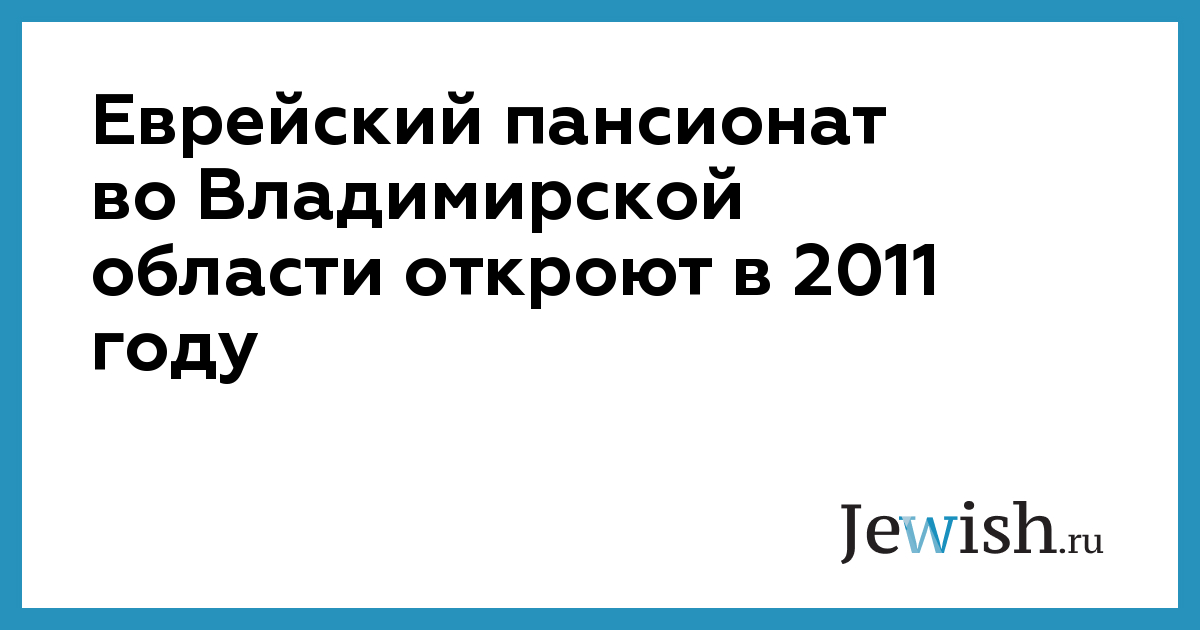 Еврейский пансионат во Владимирской области откроют в 2011 году