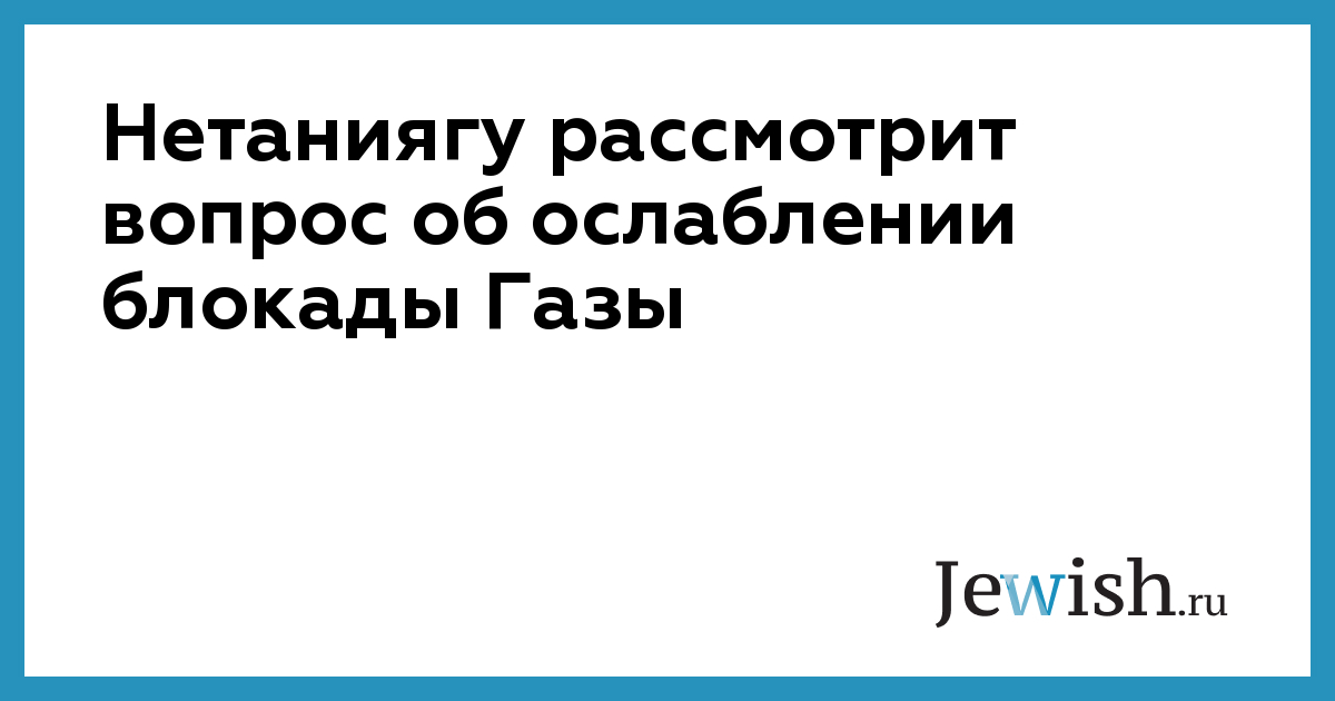 Нетаниягу рассмотрит вопрос об ослаблении блокады Газы