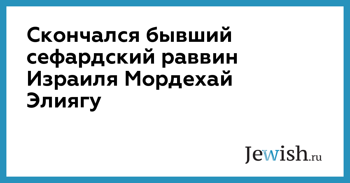 Несколько минут назад в реанимационном отделении больницы "Шаарей-Цедек" в Иерусалиме скончался в возрасте 81 года рав Мордехай Элиягу - один из авторитетнейших раввинов поколения.