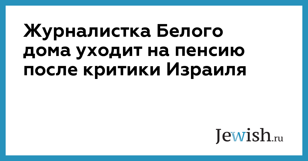Журналистка Белого дома уходит на пенсию после критики Израиля