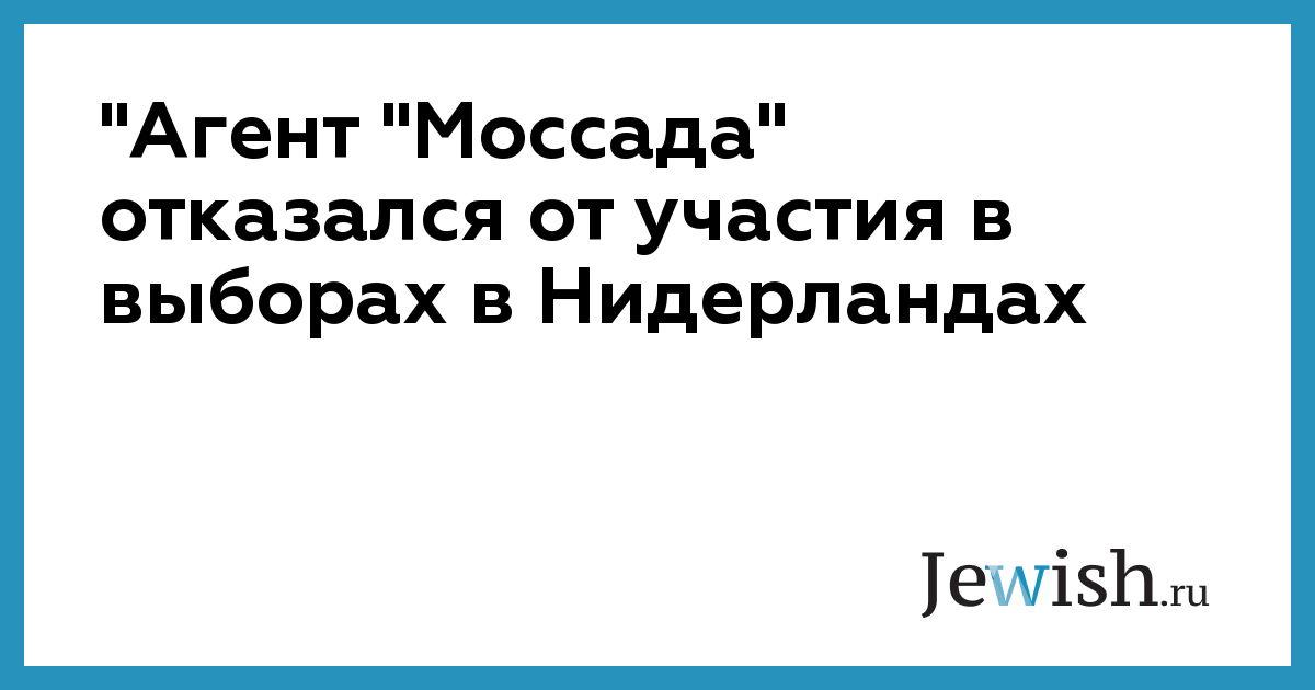 "Агент "Моссада" отказался от участия в выборах в Нидерландах