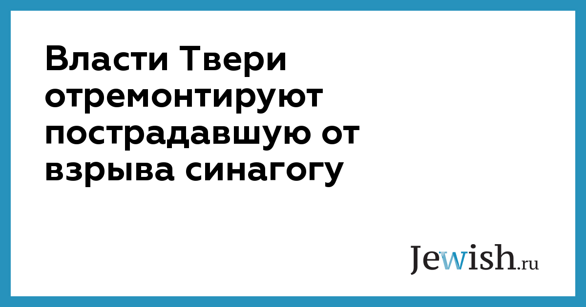 Власти Твери отремонтируют пострадавшую от взрыва синагогу