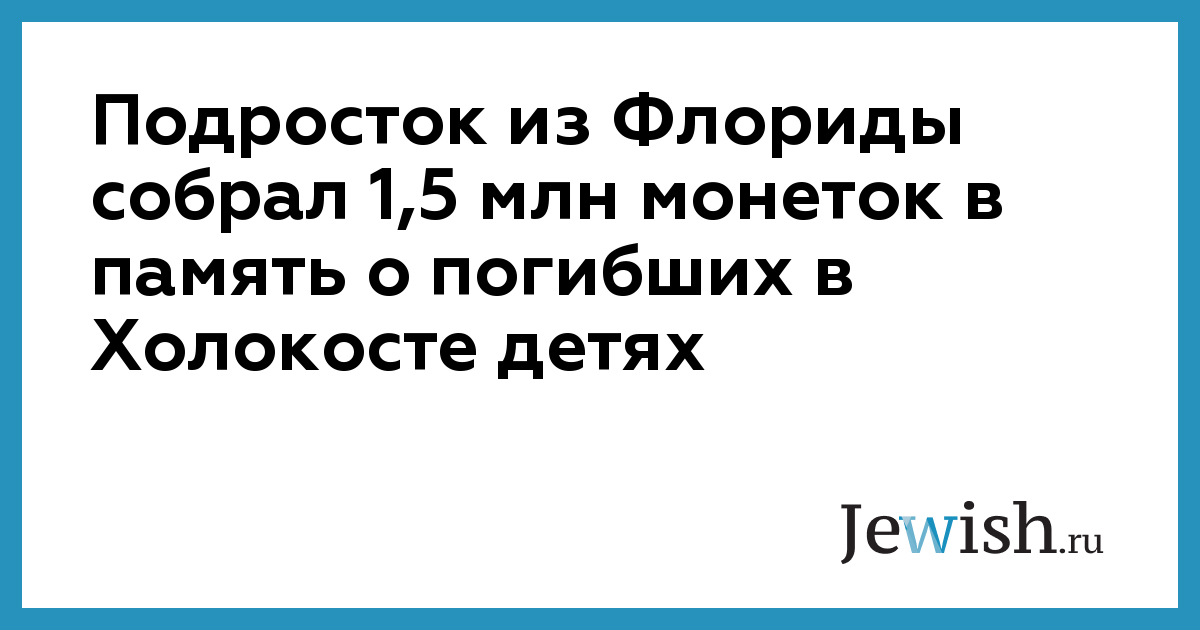 Подросток из Флориды собрал 1,5 млн монеток в память о погибших в Холокосте детях