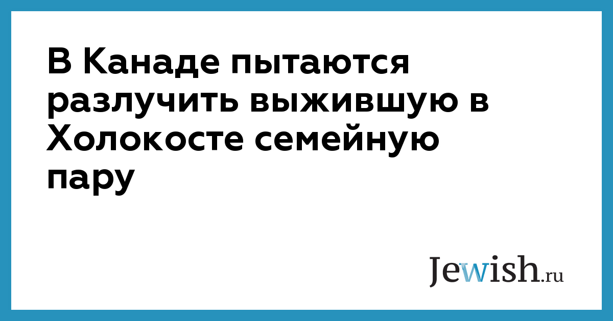 В Канаде пытаются разлучить выжившую в Холокосте семейную пару