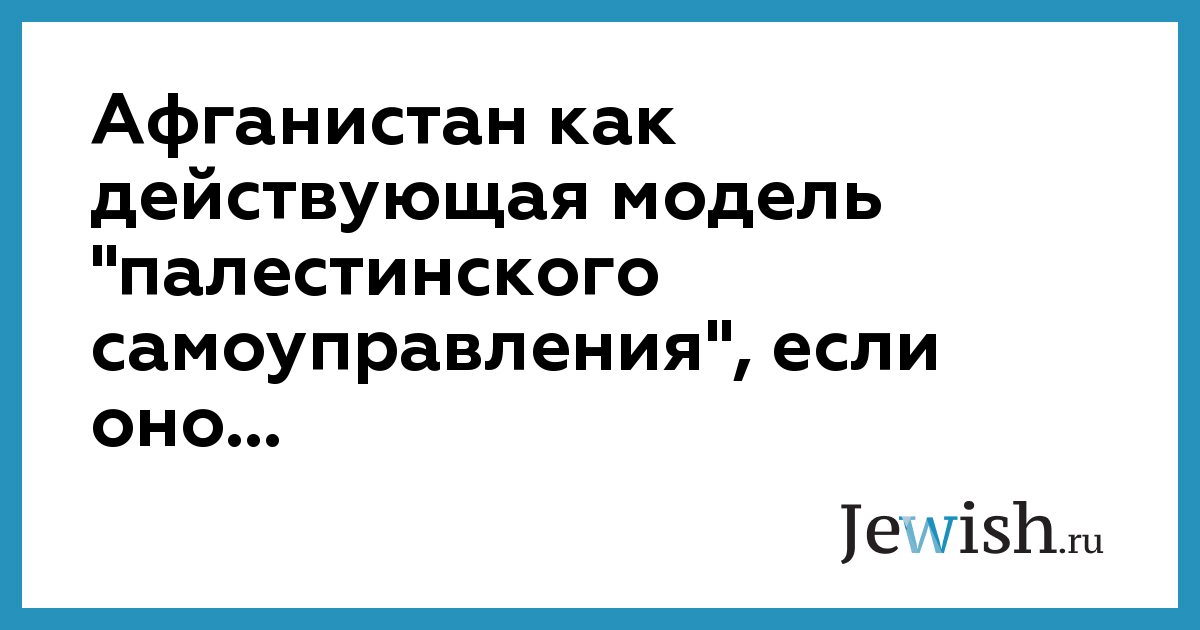 Афганистан как действующая модель "палестинского самоуправления", если оно...