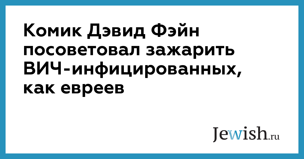 Комик Дэвид Фэйн посоветовал зажарить ВИЧ-инфицированных, как евреев