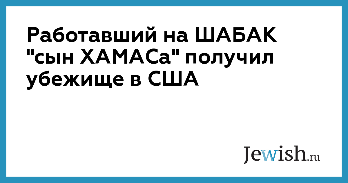 Работавший на ШАБАК "сын ХАМАСа" получил убежище в США