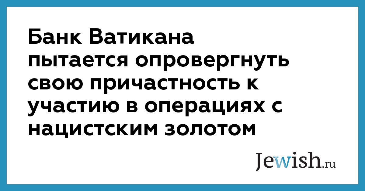 Банк Ватикана пытается опровергнуть свою причастность к участию в операциях с нацистским золотом