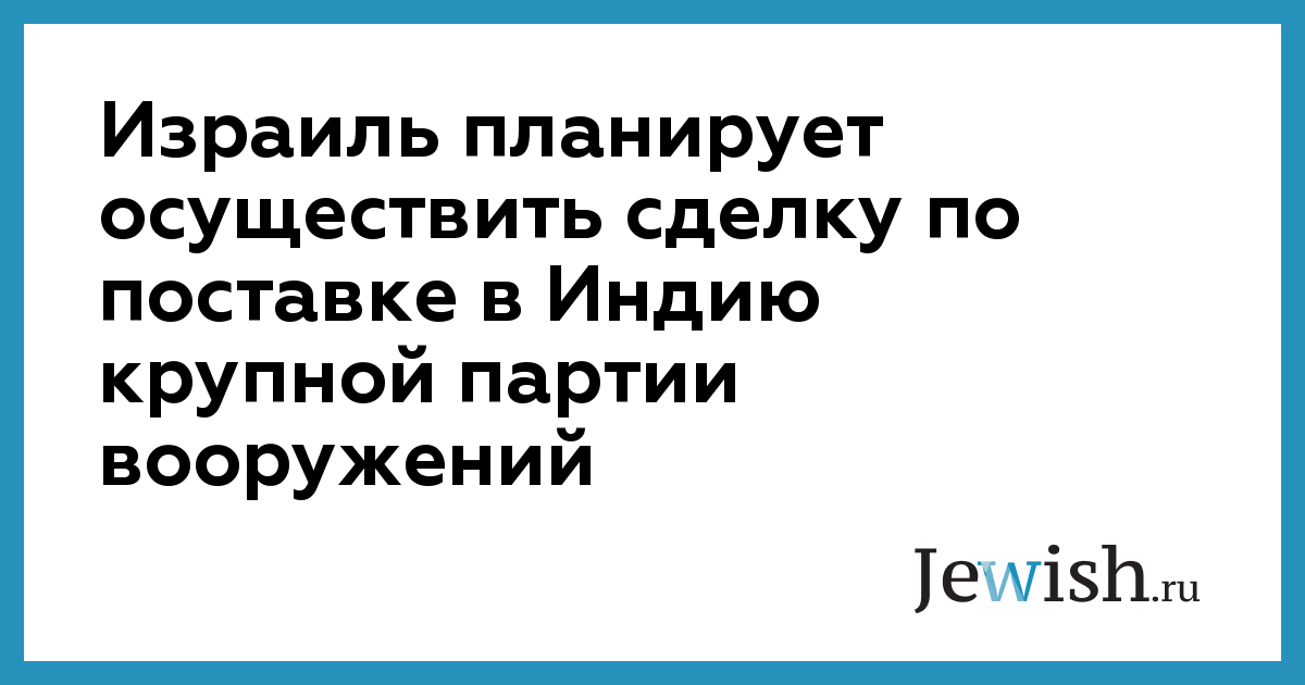 Израиль планирует осуществить сделку по поставке в Индию крупной партии вооружений