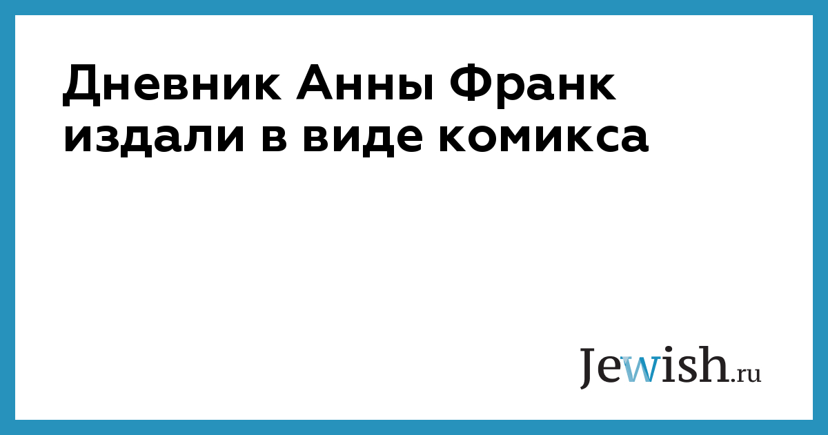 Дневник Анны Франк издали в виде комикса